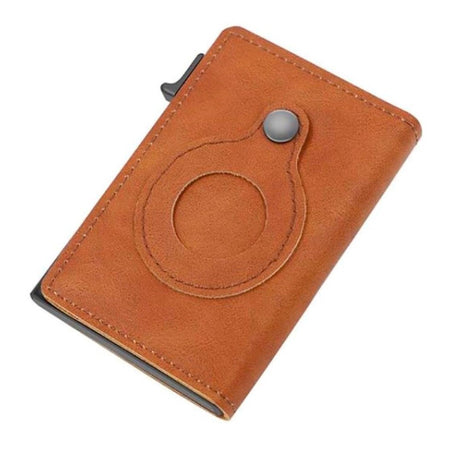 Pop Up Leather Card Holder w. Built-in Holder for AirTag - Brown