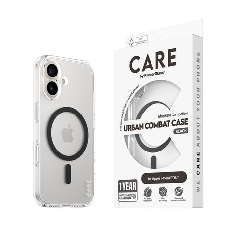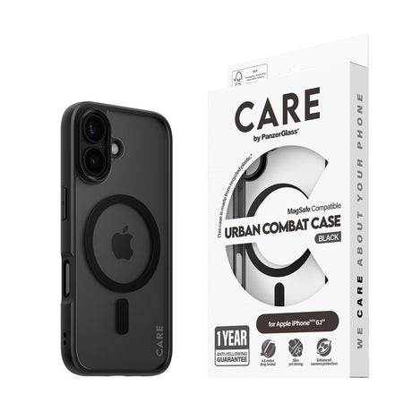 CARE by PanzerGlass iPhone 16 FLAGSHIP Urban Combat Case - MagSafe Compatible - Transparent / Black