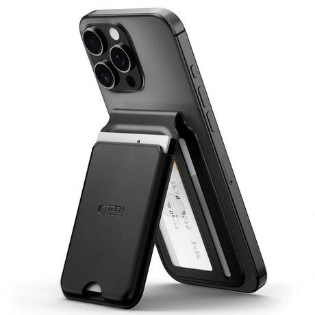iPhone 15 Plus Tech-Protect Wallet Case w. Magnet - MagSafe Compatible - Black