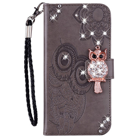 Google Pixel 8 Owl & Rhinestone Leather Wallet Case - Brown
