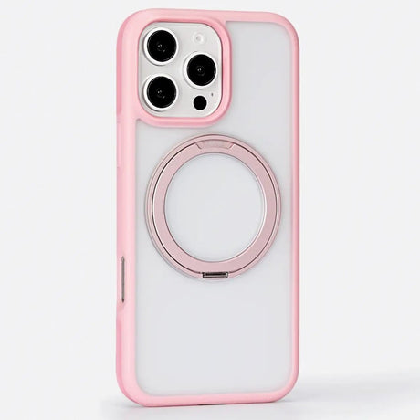 iPhone 16 Pro Plastic Case with Rotatable Kickstand Ring - MagSafe Compatible - Pink / Transparent