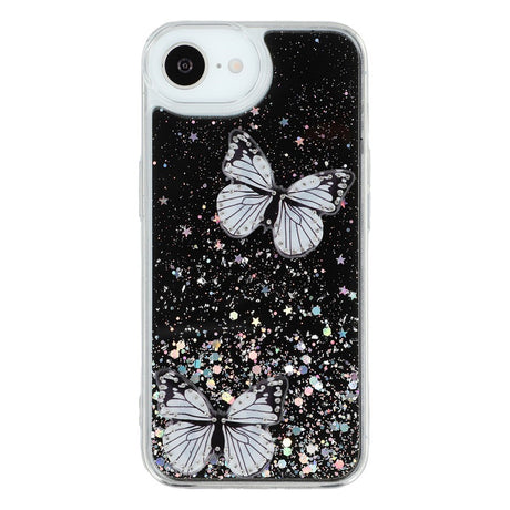 iPhone 16e Flexible Plastic Case with Butterflies - Transparent / Black