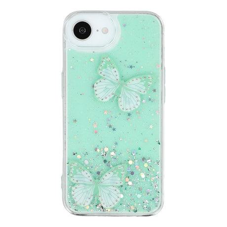 iPhone 16e Flexible Plastic Case with Butterflies - Transparent / Green