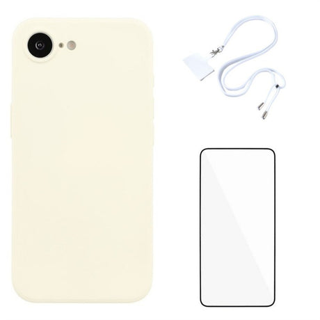 iPhone 16e Set with Flexible Plastic Case - Screen Protector - Lanyard - White