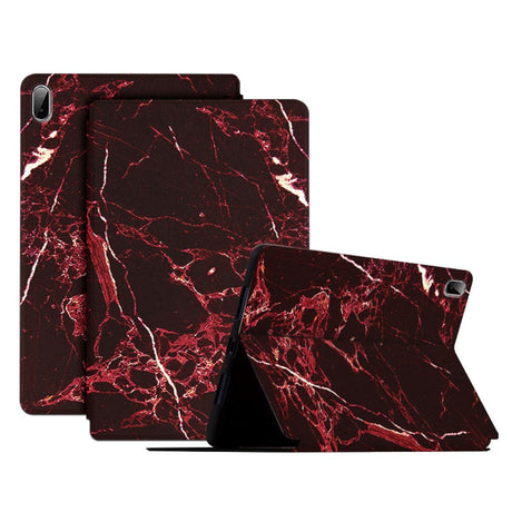 Lenovo Pad Plus Tri-Fold Flip Case - Marble - Black / Red