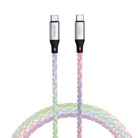Bright Mirror USB-A to USB-C, Micro USB & Lightning Cable - 66W - 1.1m. - Purple