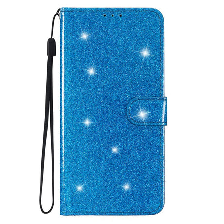 Samsung Galaxy S24+ (Plus) Leather Case with Wallet and Strap - Glitter - Blue