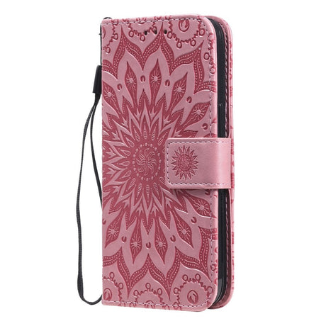 iPhone 15 Pro Wallet Case w. Strap - Sunflower Engraving - Pink