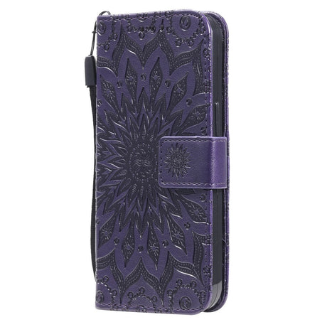 iPhone 15 Wallet Case w. Strap - Sunflower Engraving - Purple