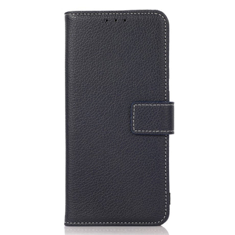 iPhone 15 Pro Litchi Leather Flip Cover w. White Stitches and Wallet - Black