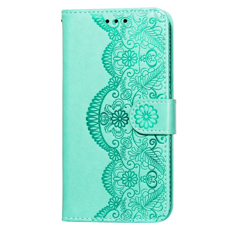 Samsung Galaxy S21+ (Plus) Leather Wallet Case - Flower Vine Imprint - Green