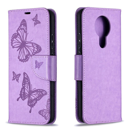 Nokia 3.4 Leather Wallet Case - Butterfly Motif - Purple