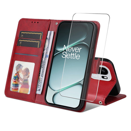OnePlus 15R ENKAY 2-in-1 Faux Leather Flip Case with Screen Protector Glass - Red