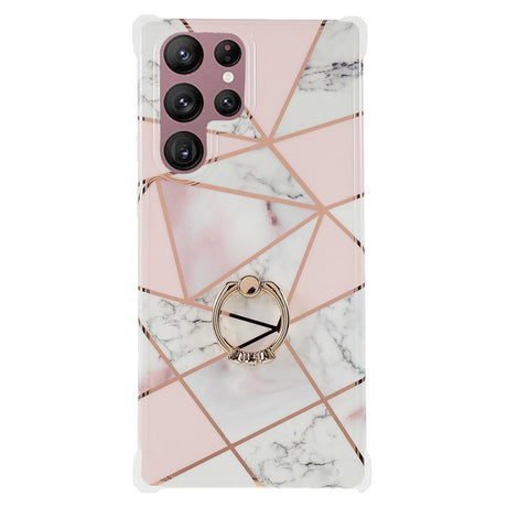 Samsung Galaxy S22 Ultra Flexible Plastic Case w. Finger Ring - White Pattern