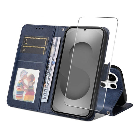 Samsung Galaxy S26 Ultra ENKAY 2-in-1 Faux Leather Flip Case with Screen Protector Glass - Blue