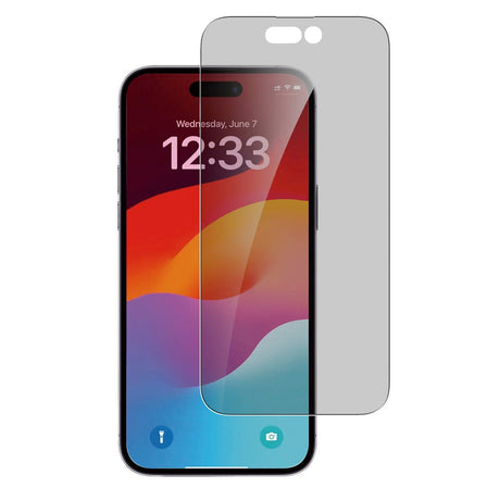 iPhone 15 Glass Pro+ Screen Protector with Privacy - Case Friendly - Transparent / Black Edge