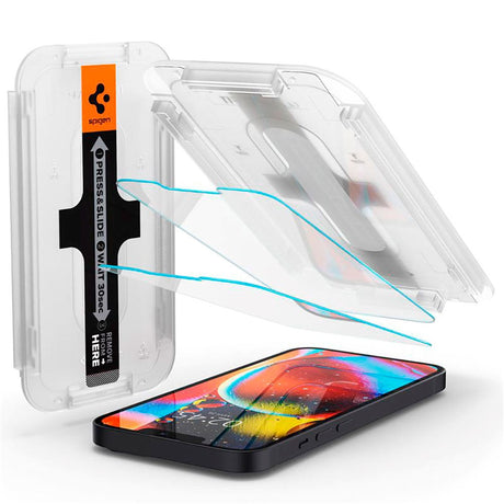 iPhone 12 Mini Spigen EZ Fit Glas.tR Screen Protection 2. Pcs - Case Friendly - Transparent