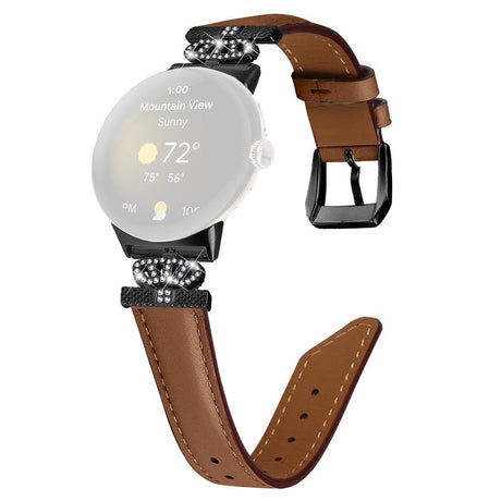 Google Pixel Watch 1 / 2 / 3 Leather Strap w. Black Rhinestone Buckle - Brown