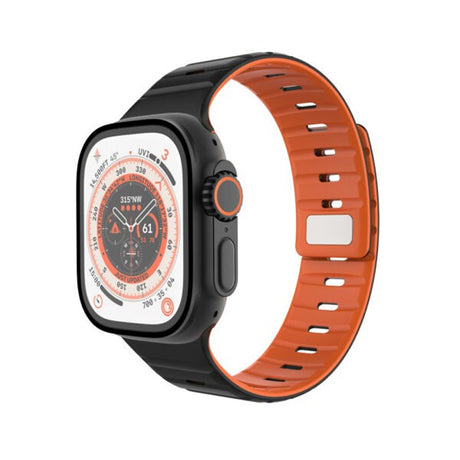 Apple Watch (42/44/SE/45/46/49mm) Fixed Magnetic Silicone Strap - Black / Orange