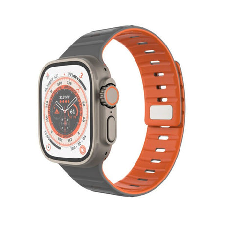 Apple Watch (42/44/SE/45/46/49mm) Fixed Magnetic Silicone Strap - Grey / Orange