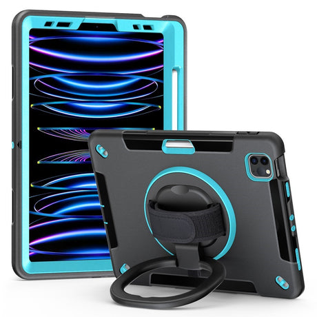 iPad Air 11" (2024) / Pro 11" (2018-2024) Kids Case w. Shoulder Strap & Hand Holder - Octopus - Blue