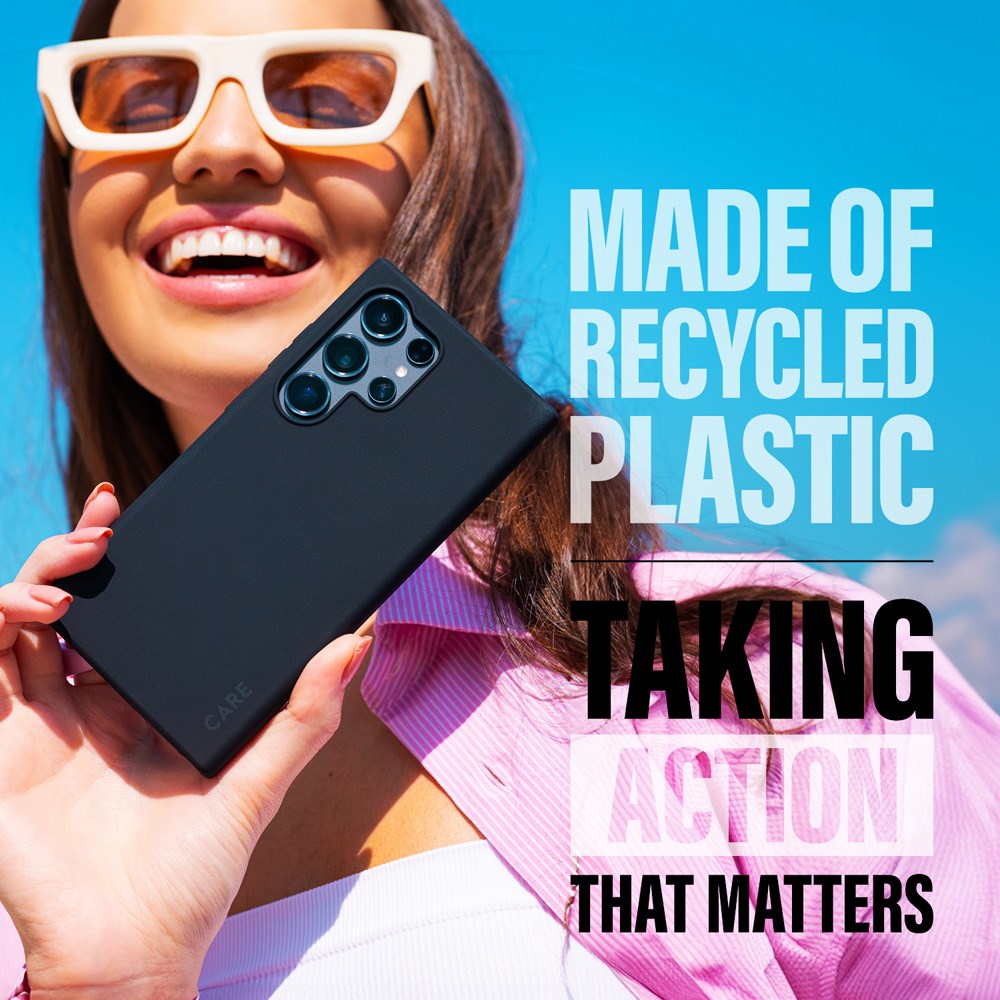 Here is an Samsung Galaxy S25+ (Plus) case that offers both a classic and elegant look at the same time as good protection. It is made of 100% recycled flexible plastic with a soft, matte finish.