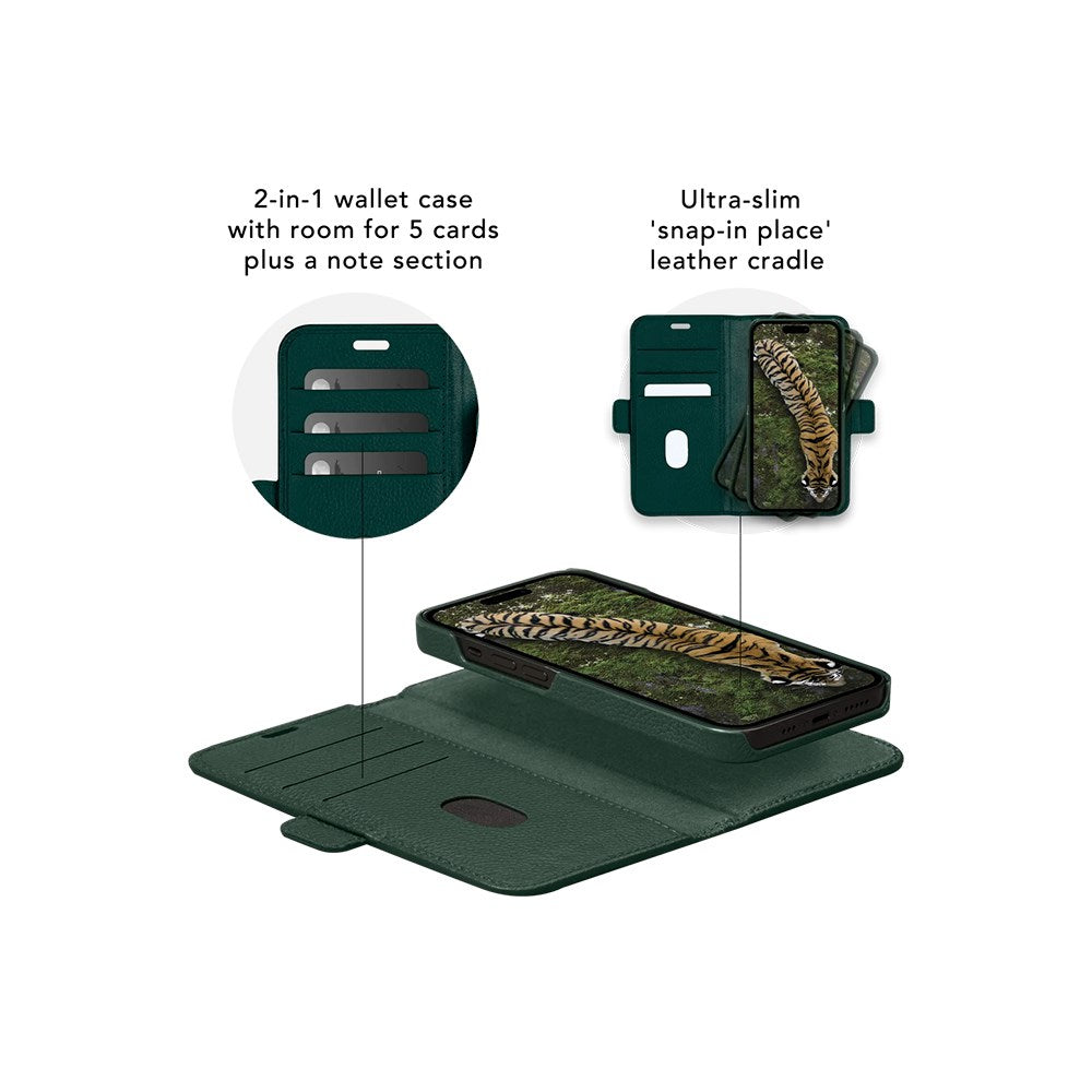 New York 2-in-1 Flip Case - Genuine Leather - iPhone 15 - Green