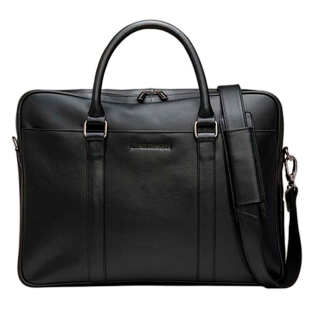 "Skanderborg" Genuine Leather 16" (37 x 27 cm) Macbook / Laptop Bag - Pebbled Black