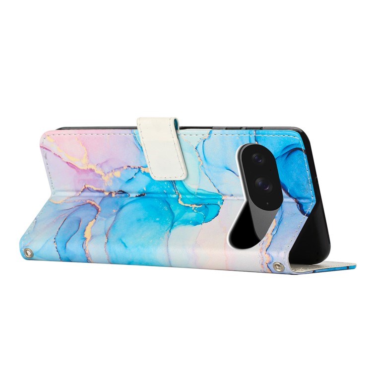 Google Pixel 10 / 10 Pro / 9 / 9 Pro Marble Faux Leather Flip Case with Strap - Pink / Green