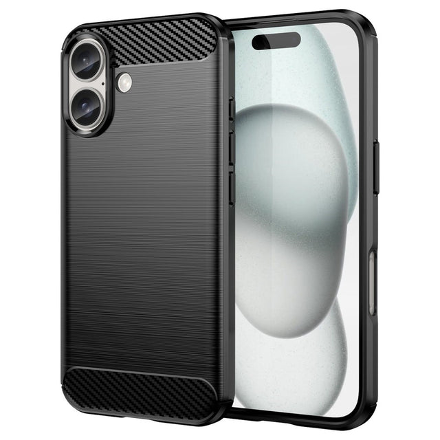 A flexible plastic case for iPhone 16 that provides good protection for your phone. The case has a cool carbon look at the top and bottom combined with a cool brushed metal look. Good protection against scratches and scuffs with this case.