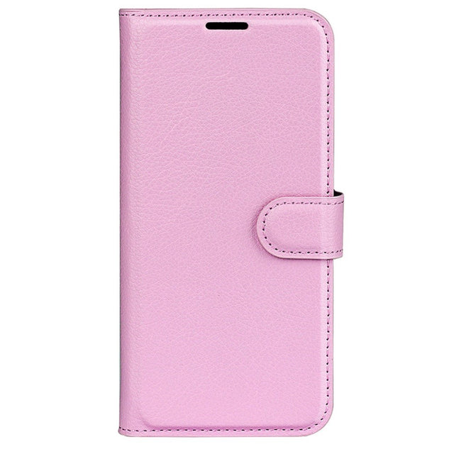 iPhone 16 Plus Litchi Leather Flip Case w. Wallet - Pink
