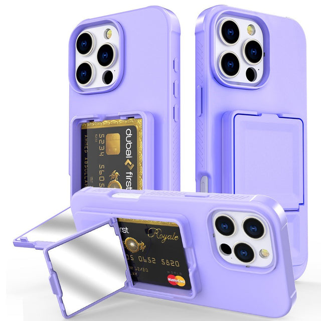 iPhone 16 Pro Flexible Plastic Case with Card Holder & Built-in Mirror - Purple