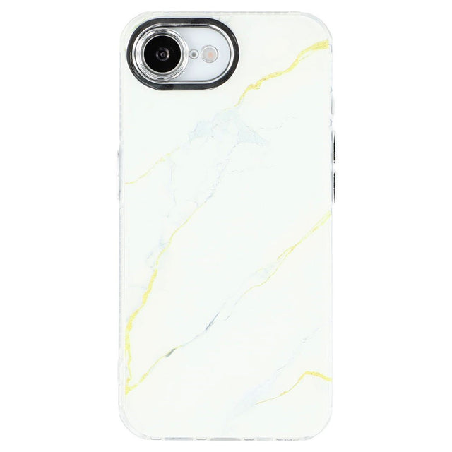 The unique marble design of this iPhone 16e case adds a stylish and modern look to your phone, making it easy to recognize. The elegant metallic-like frame around the camera cutout adds a modern touch.