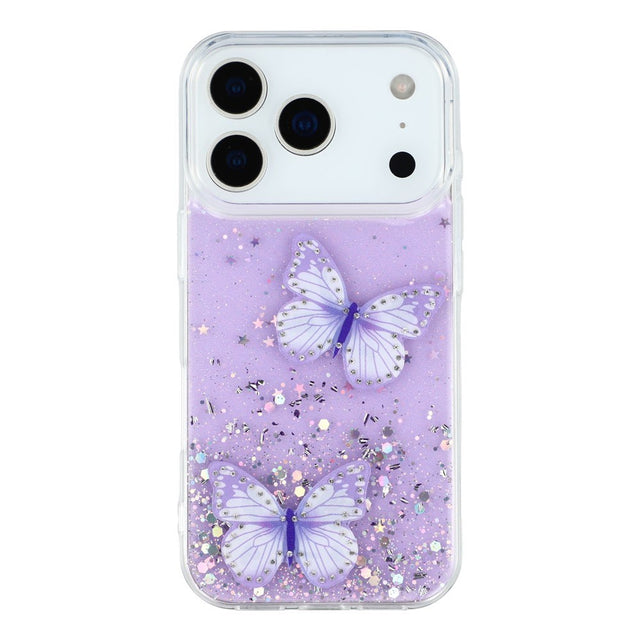 Inside this iPhone 17 Pro Max case, two beautiful butterflies adorn the design. They are surrounded by glitter, creating a unique look when light hits them.