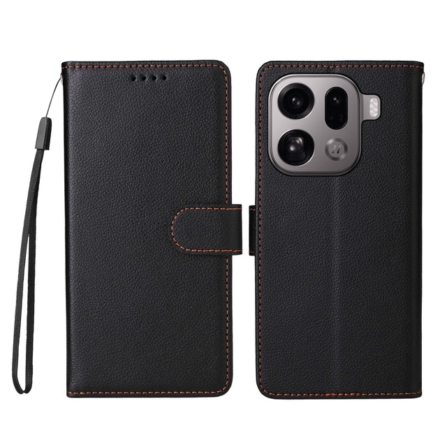 Oppo Find X9 Pro Faux Leather Flip Case with Strap - Black