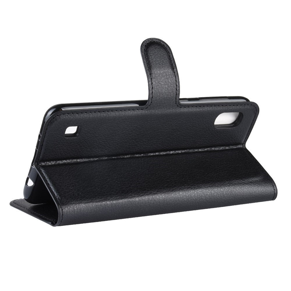 Samsung Galaxy A10 PU Litchi Faux Leather Wallet Case - Black
