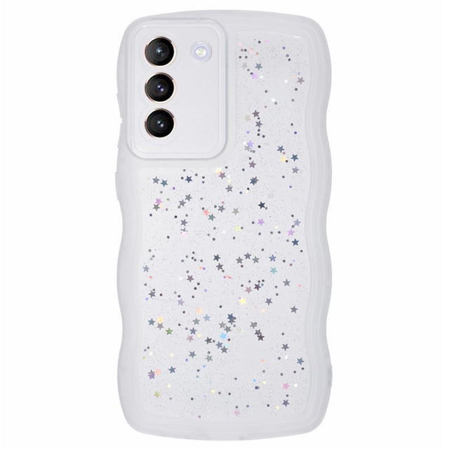 EIDERWOOD Samsung Galaxy S22+ (Plus) Flexible Plastic Wavy Case with Glitter - Transparent / White