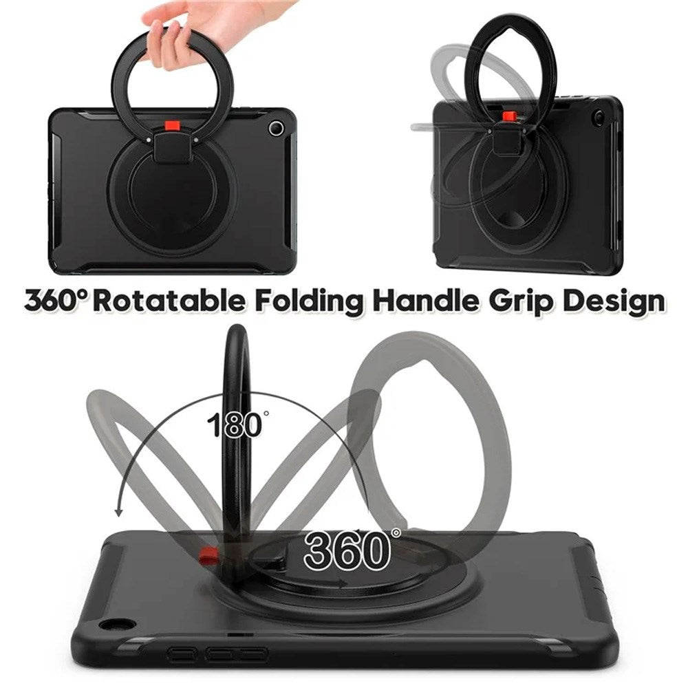 360° Rotatable Kickstand: Built-in kickstand that rotates 360 degrees, allowing hands-free viewing in both landscape and portrait mode. It also doubles as a hand grip for easy, secure transport.