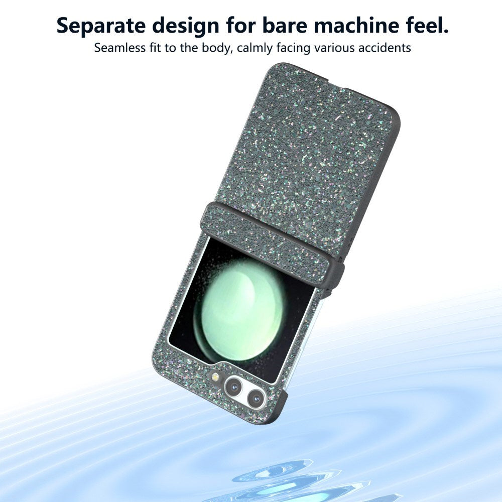 Samsung Galaxy Z Flip6 Leather Covered Sparkling Plastic Case - Black