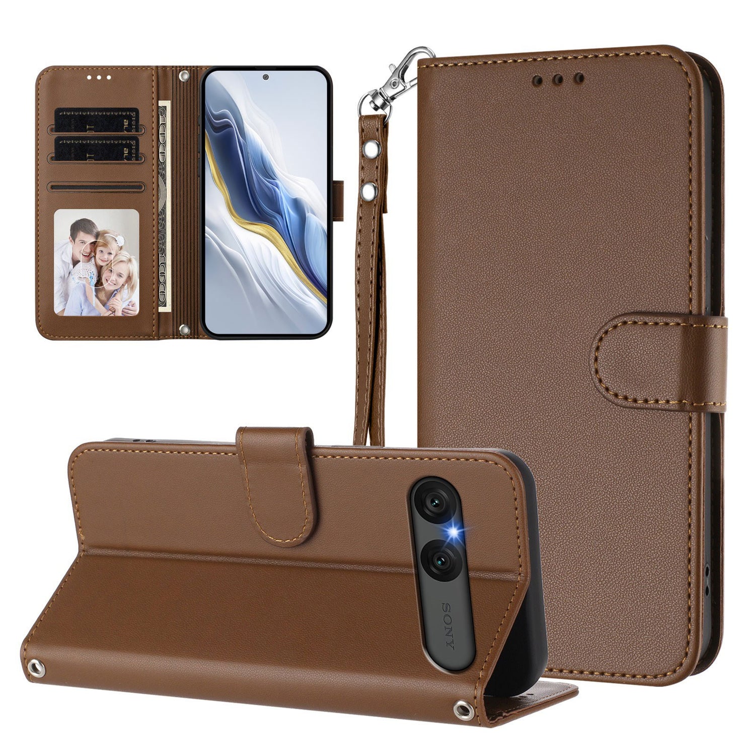 Sony Xperia 10 VII Faux Leather Flip Case with Card Holder & Strap - Brown