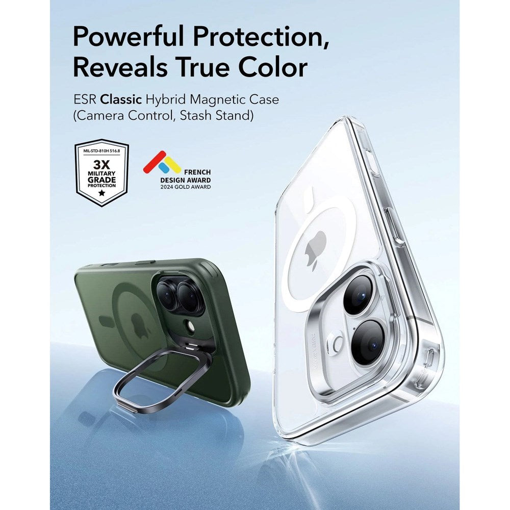 Here is a case for the iPhone 17 that not only protects your smartphone but also enhances functionality and comfort! The ESR Classic Hybrid Stash Case comes with an integrated kickstand that can be unfolded, allowing the phone to stand on its own – perfect for video calls or watching movies and series on the go.