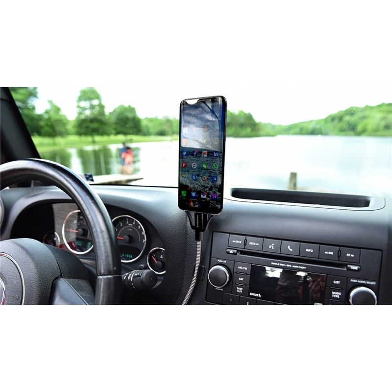 With its flexible design, the cable can be shaped exactly as you want, and the self-standing holder allows you to position your phone optimally – whether in the car, at the office, or at home.
