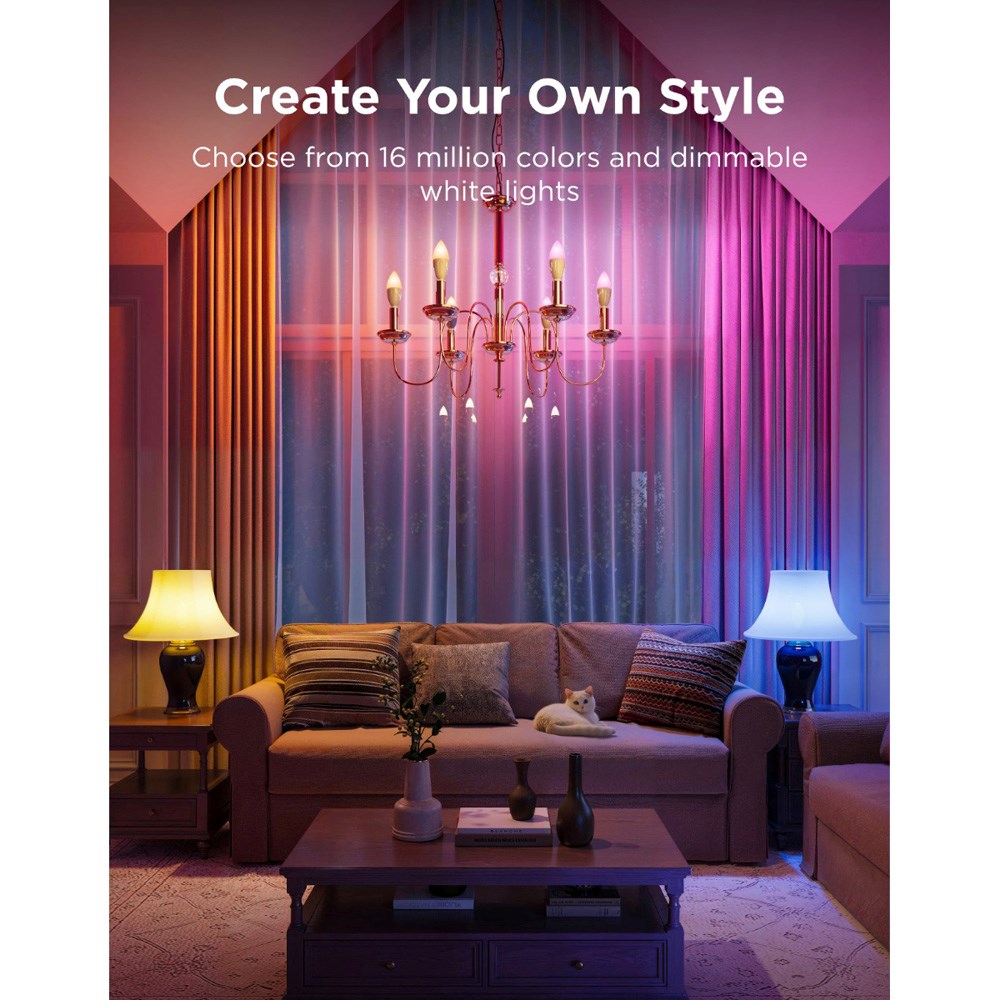 Achieve intelligent and atmospheric lighting throughout your home with Govee Smart LED Bulbs – a set designed to give you full control over your lighting and create the perfect ambiance for any occasion. With 450 lumens and an E14 base, these bulbs fit perfectly in lamps, table lighting, and decorative fixtures.