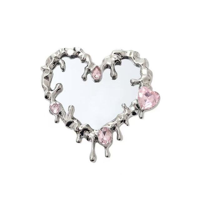 The small mirror is designed in an elegant heart shape that appears to be melting and is adorned with pink stones. The mirror measures 5 x 5.3 cm and looks great on any phone.