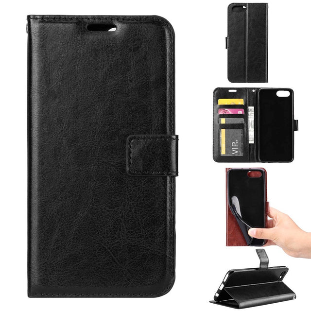 Huawei Y5 (2018) Neutral Leather Wallet Case Black