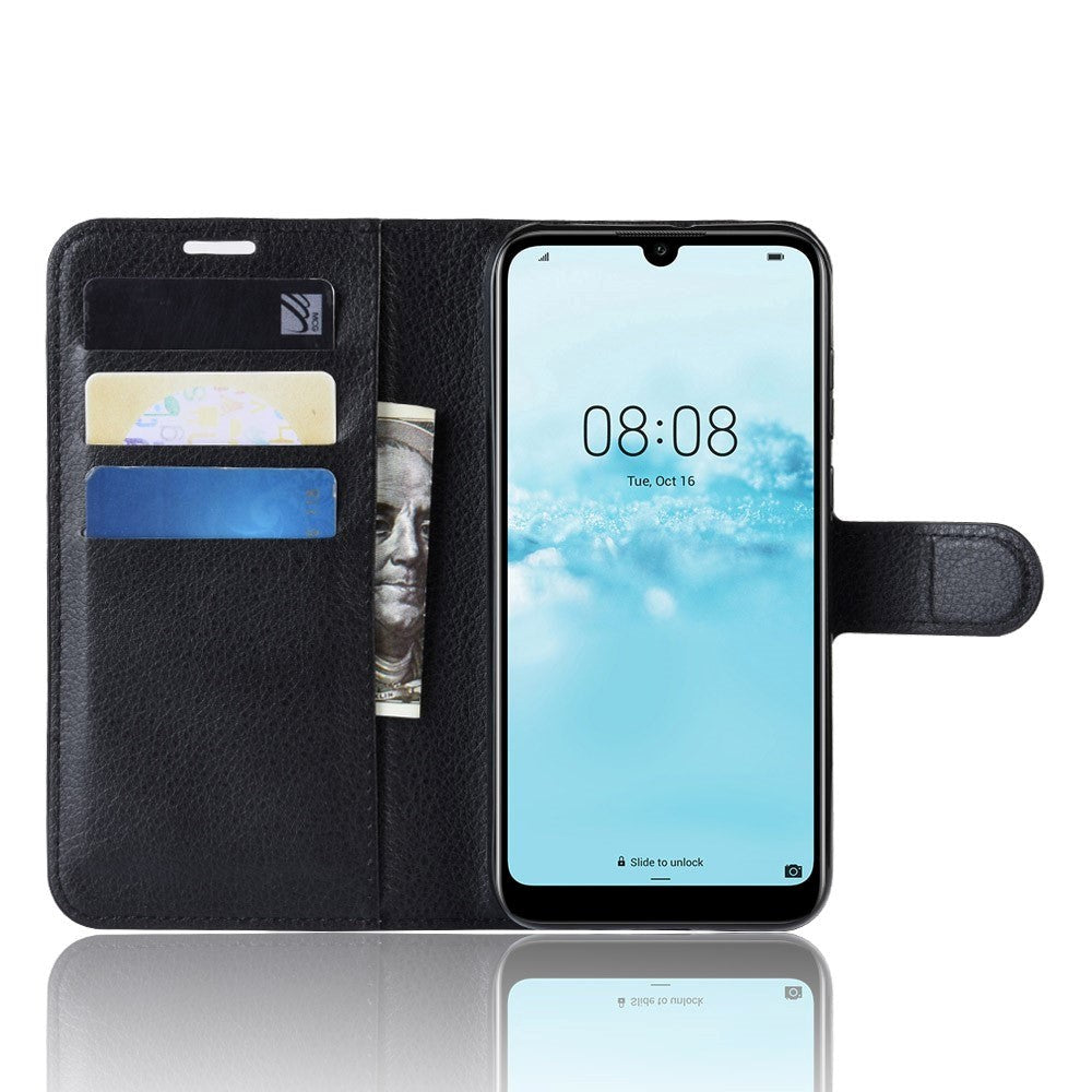Huawei Y5 (2019) Litchi Leather Wallet Case - Black