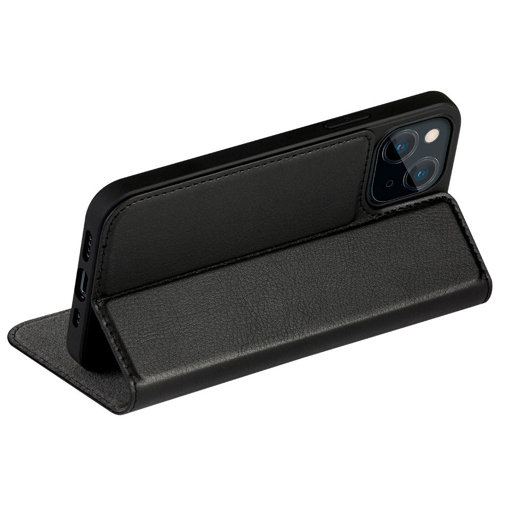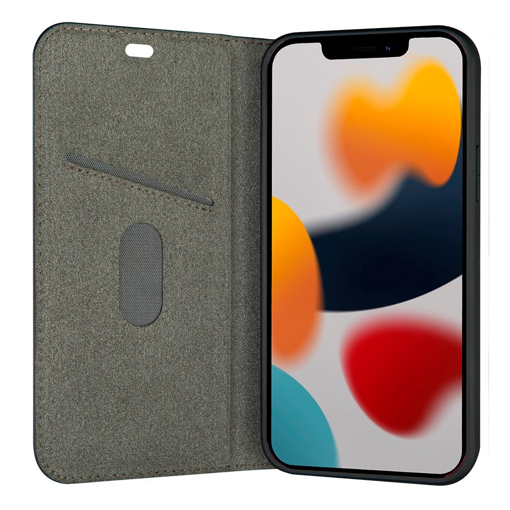 The case is made of quality vegan leather, which is durable and provides excellent protection for your phone. This iPhone 13 Mini case opens with a magnetic flap, and the inside of the case is made of the same leather material.