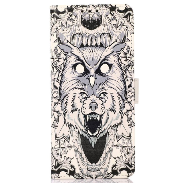 iPhone 13 Pro Leather Wallet Case - Abstract Owl and Wolf