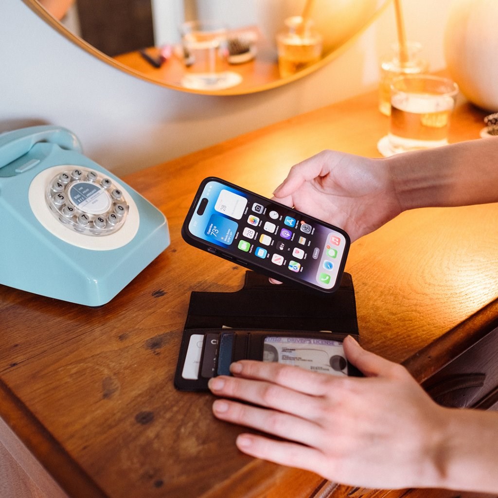 An exclusive Twelve South leather case for iPhone 14 Pro, which is made some of the best materials. The case provides good protection for the phone on both the front and back. Carry your phone safely in your pocket or bag, along with keys and such.