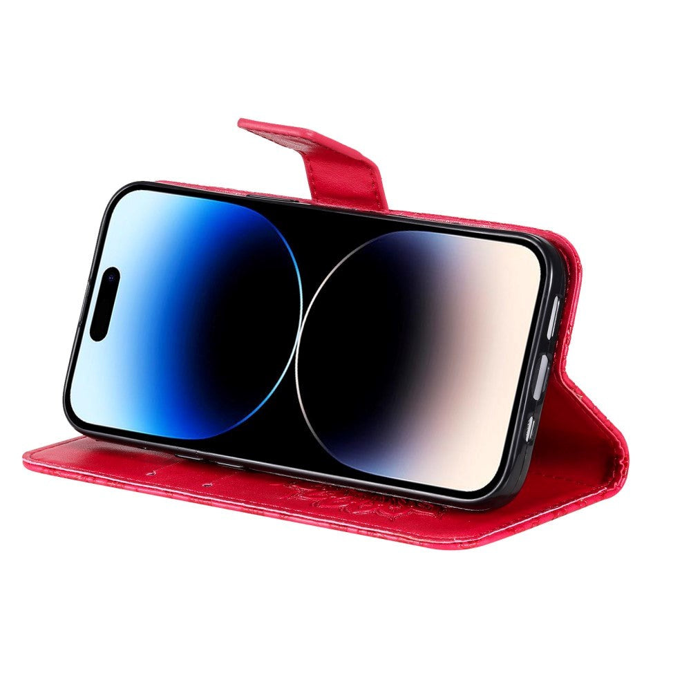 iPhone 15 Pro Leather Case with Wallet and Strap - Mandala Flower - Red